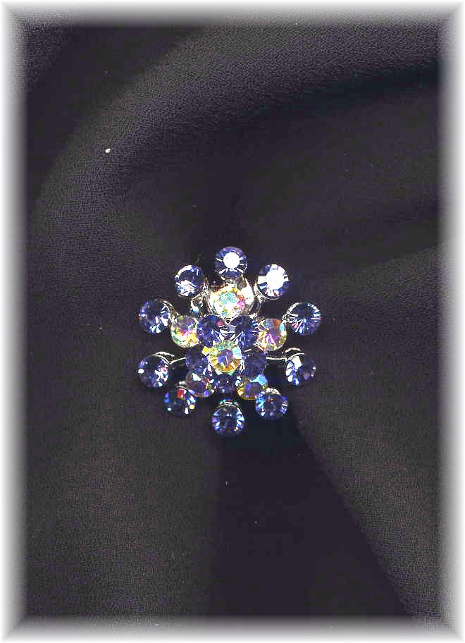 0.8" in diameter. Combination of lavender and crystal AB rhinestones. Silver tone metal.