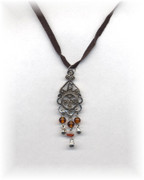 Filigree Drop Charm Pendant on a Brown Suede Cord