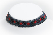 Blue Beaded Choker Necklace Red Accents and Hematite Trim